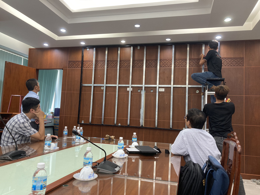 1/ Khảo sát và thiết kế: Đội ngũ kỹ thuật tiến hành khảo sát địa điểm, đo đạc kích thước và thiết kế màn hình sao cho phù hợp với không gian và yêu cầu của VNPT Khánh Hòa.