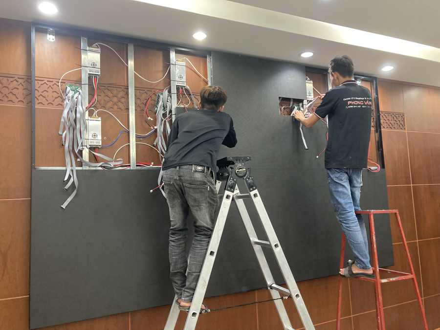 2/ Lắp đặt và cấu hình: Màn hình LED P2 được lắp đặt cẩn thận, kết nối với các hệ thống điều khiển để đảm bảo hoạt động ổn định và hiệu quả.